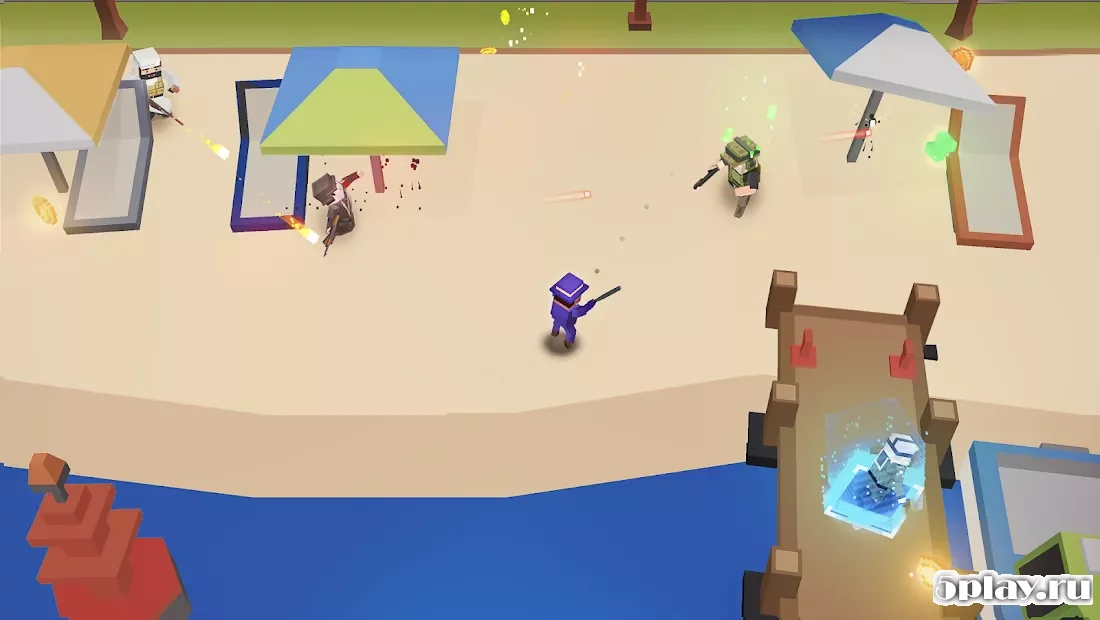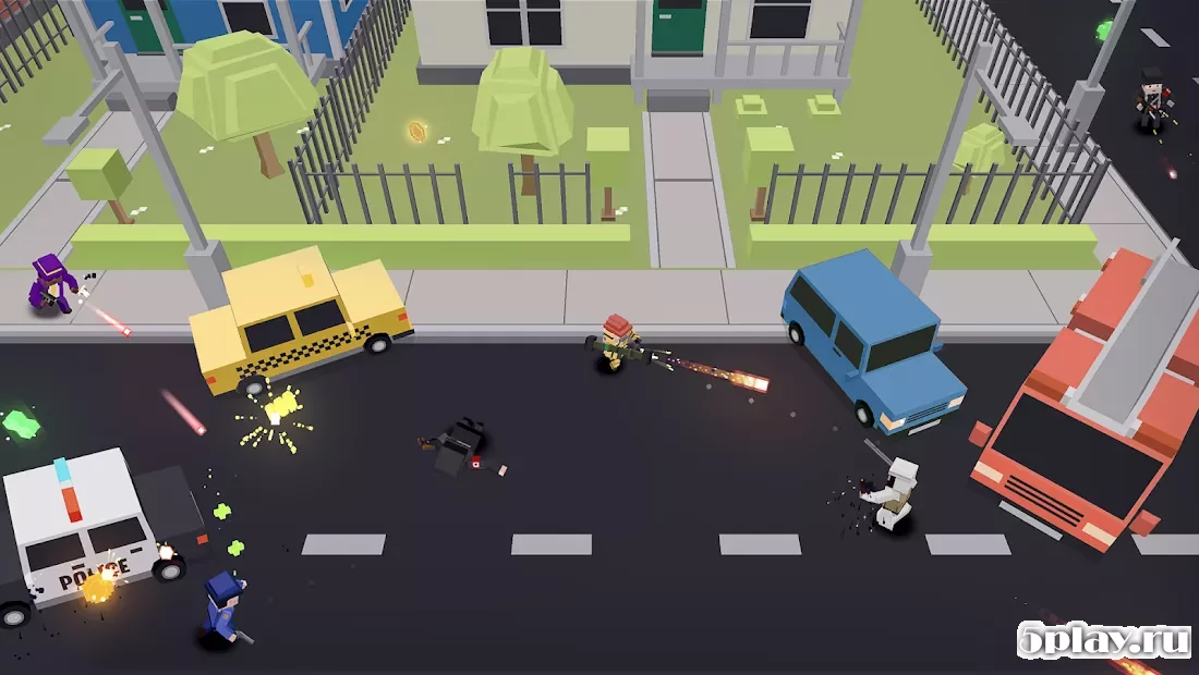 GUNLAND - кубический экшн-шутер с видом сверху, действие которого развернется на улицах мегаполиса. Выбрав одного из имеющихся персонажей, игрок отправится в динамичные баталии, в которых привет участие и другие реальные пользователи. Для их устранения необходимо будет применять широкий арсенал огнестрельного оружия и взрывчатки, который можно пополнять на заработанные деньги. Помимо пешего передвижения в процессе перестрелок герой имеет возможность перемещаться на автомобилях и прочих транспортных средствах.