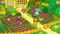Смешарики. Кулинария - развивающая игра с героями популярного отечественного мультсериала. Вместе с Крошем, Ёжиком, Лосяшем и другими персонажами ребенок сможет постичь азы кулинарии. Для этого ему понадобится проходить интересные уровни, на которых необходимо собирать овощи с огорода, срывать фрукты с деревьев в саду, искать нужные ингредиенты в кладовке у Совы и готовить вкусные блюда. Всего здесь имеется 24 уровня, проходить которые будет не только интересно, но и полезно для развития мышления и логики.