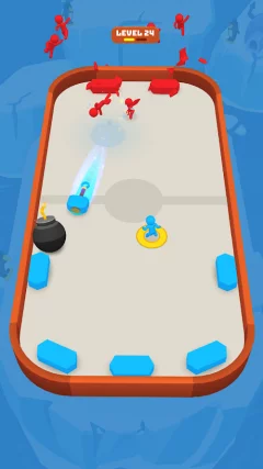 аркада, которая на первый взгляд напоминает аэрохоккей. В ней игрок будет сражаться с соперниками с помощью запуска шайб и других снарядов. Чтобы одержать верх, необходимо разрушить все элементы обороны и саму базу оппонента. При этом нужно стараться защитить и свои укрепления, ведь противник может перехватить бросок и перейти в атаку. Поэтому пользователю важно сохранять концентрацию и вовремя перехватывать снаряд. Выигрывает тот, кто первым смог разрушить стены и добраться до ворот. Успехи помогут получить доступ к новым типам шайб, обладающими интересными свойствами.