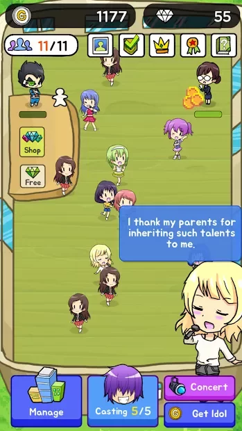 аркада от азиатских разработчиков, который приоткроет игроку дверь в мир шоу-бизнеса. Пользователь станет наставником для множества персонажей, которым предстоит пройти путь от ноунеймов до настоящих звёзд. Вначале герои будут обычными стажерами, над популярностью которых придется потрудиться. Чтобы они получили большую армию поклонников, геймер должен нажимать на экран и таким образом пополнять копилку очков. Также ему необходимо совмещать одинаковых героев и получать новых артистов. Вся деятельность будет приносить золото, которое можно потратить на всяческие улучшения для подопечных.