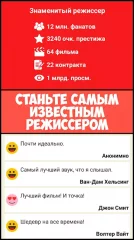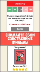 Симулятор Киностудии - увлекательная игра, которая предоставит игроку шанс попробовать себя в сфере кинематографа. Здесь пользователю предстоит пройти путь от никому не известного кинодела до знаменитого режиссера и владельца студии, выпускающей крутые блокбастеры. В процессе деятельности геймер будет утверждать сценарии, подбирать актеров и съёмочную группу, станет снимать кино и продвигать его для зрителей. Успехи на данном поприще позволят получить одобрение от критиков и многомиллионные кассовые сборы, что положительно скажется на дальнейшей работе киностудии.