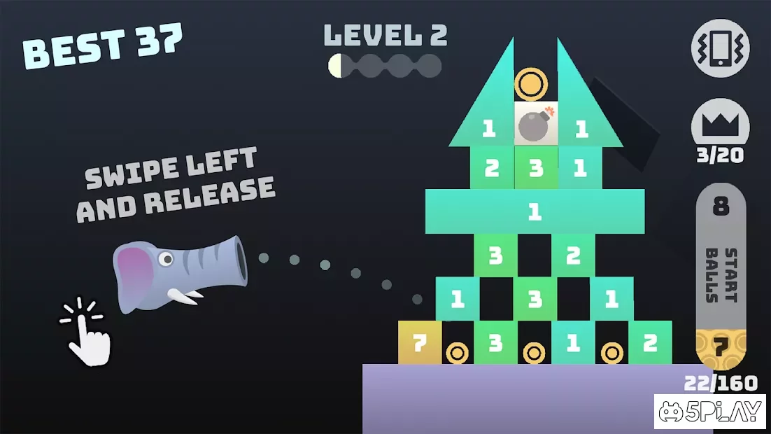 головоломка, в которой игрок будет разрушать конструкции из различных блоков. На каждом уровней игры пользователь с помощью пушки, стреляющей шарами, должен уничтожить строение. Все конструкции состоят из фигур разной формы и прочности, причем последняя указана числом. Стрелять следует с умом, так как пушка имеет ограниченное количество выстрелов и максимально выпускаемых снарядов. Помимо уничтожения конструкций здесь также можно собирать бонусные монетки и пользоваться бомбами для ускорения процесса.