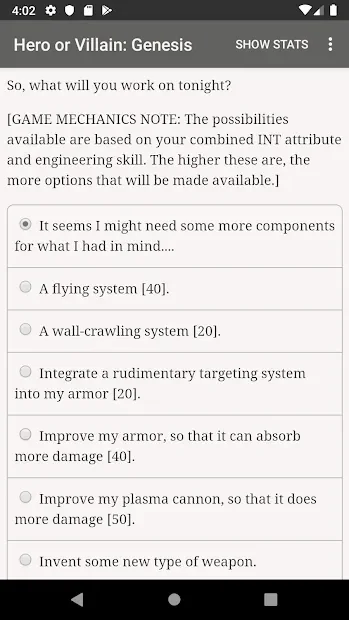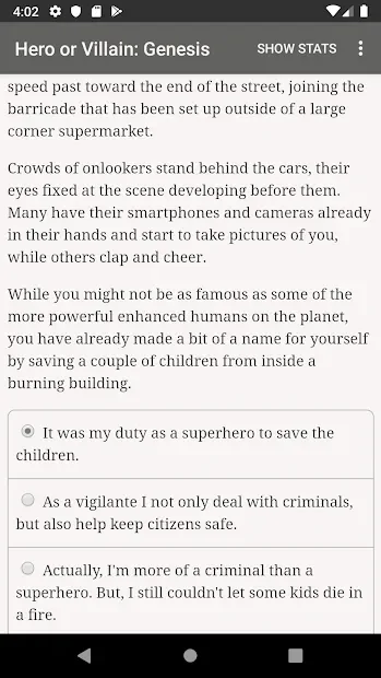 Hero or Villain: Genesis - текстовая игра на супергеройскую тематику. Пользователь возьмет под управление героя, которому предстоит пройти через закрученный сюжет с вариантами выбора развития событий. Персонаж сможет сражаться с преступниками Нью-Йорка самостоятельно, вступить в группу других супергероев или же оказаться самым настоящим злодеем, наводящим ужас на простых жителей мегаполиса. От того, какие ответы будет давать игрок зависит течение сюжета и его финальная развязка, поэтому геймеру придется думать, как поступать и что делать.