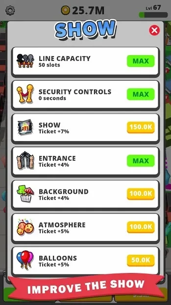Idle Concert - аркадный кликер, который позволит игрокам устроить собственный музыкальный фестиваль. Для начала геймерам придется довольствоваться небольшой сценой и не самыми известными исполнителями, способными собрать лишь небольшую толпу зрителей. Постепенно престиж фестиваля станет увеличиваться, что приведет к повышению доходов, а следовательно - и к улучшению качества проводимого мероприятия. Большое количество сцен и тематических объектов обязательно повысит продажи билетов на самых топовых музыкантов и привлечет еще большее количество любителей музыки.