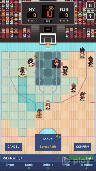 аркада на тему баскетбола, которая перевернет представления пользователей об этой игре. Здесь геймерам предлагается выступить в роли наставника баскетбольной команды, участвующей в различных матчах. В каждом поединке необходимо забросит как можно больше мячей в корзину, для чего игрок должен перемещать баскетболистов по площадке. Сам паркет представляет собой некое подобие шахматной доски, по клеточкам которой и станут передвигаться подопечные. От правильных действий и выстроенной тактики зависит, как будет развиваться течение матча, и кто выйдет из него победителем.
