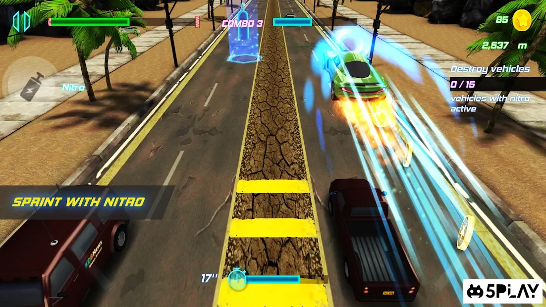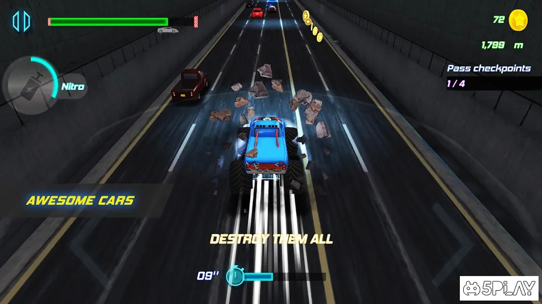 Максимальная скорость: Шоссейные гонки - традиционный гоночный раннер с практически бесконечным геймплеем. Как и в других подобных гонках, здесь игрок будет ездить по прямым трассам с присутствием других участников движения. В процессе поездок для достижения рекордных показателей пользователь должен избегать столкновений с другими машинами, при этом ехать нужно на максимально возможной скорости. Попутно с этим тут можно собирать разбросанные по дороге бонусы. Успехи на трассе позволят открыть новые авто и улучшения для них.
