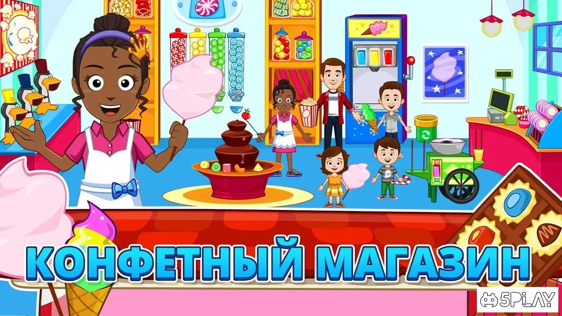 My Town : Stores магазинах - обучающая детская игра из известной серии. На этот раз юные пользователи будут приглашены в городок, полный всевозможных магазинов и заведений. Вместе с героями маленькие геймеры смогут посетить супермаркет, кафе, бутики с одеждой и обувью, фуд-траки и прочие объекты. В каждом из них можно полноценно взаимодействовать с окружающими предметами, а также общаться с персонажами. Помимо этого тут также можно подбирать всевозможные наряды для жителей города.