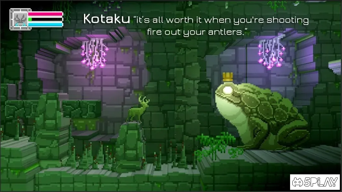 The Deer God - платформер с пиксельной графикой и нетривиальным сюжетом. Главный герой игры в прошлом являлся охотником на оленей. После очередной охоты он сам превратился в это животное с ветвистыми рогами, и теперь ему необходимо задобрить бога оленей для достижения конца пути. На протяжении прохождения игрок вместе с персонажем будет выполнять различные квесты, решать интересные