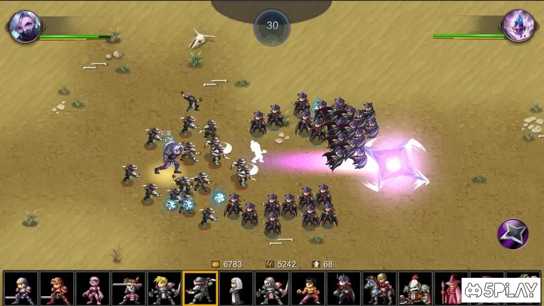 Miragine War - стратегия в средневековом сеттинге с увлекательными сражениями между двумя войсками. С помощью доступных боевых юнитов игрок станет воевать с армиями противников на открытых пространствах. Для достижения победы полководцу следует наблюдать за ходом боя и вовремя выпускать определенный вид воинов. Каждый класс персонажей имеет свои атакующие и оборонительные способности: более мощных солдат нужно использовать для защитных построений, тогда как легкие маневренные персонажи больше подойдут для наступления. Помимо этого тут есть и боевые маги, заклинания которых станут наносить особенно сильный урон вражеским построениям.