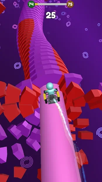 аркада, в которой игрока ожидает свыше 1000 уровней для прохождения. Пользователь станет управлять человечком, сидящим на машинке и перемещающимся по трубе в небе. Все трубы имеют множество цветных стенок, расположенных друг за другом и окрашенных в два цвета. В процессе поездки игроку следует пробивать только стеночки определенного цвета. Таким образом он сможет заработать больше очков. Помимо того тут также есть бустеры ускорения, которые помогут достичь финиша как можно быстрее.