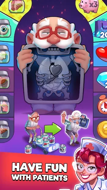 Crazy Hospital - экономический кликер с классическим геймплеем, в котором игрок возглавит самую безумную больницу в истории. Пользователь получит в распоряжение необычный госпиталь, в котором помощь пациентам станут оказывать очаровательные девушки. Для получения прибыли геймер должен постоянно совершенствовать лечебное заведение, покупая оборудование и открывая новых врачей. Благодарные клиенты обязательно отплатят за лечение звонкой монетой и таким образом обеспечат многомиллионную прибыль.