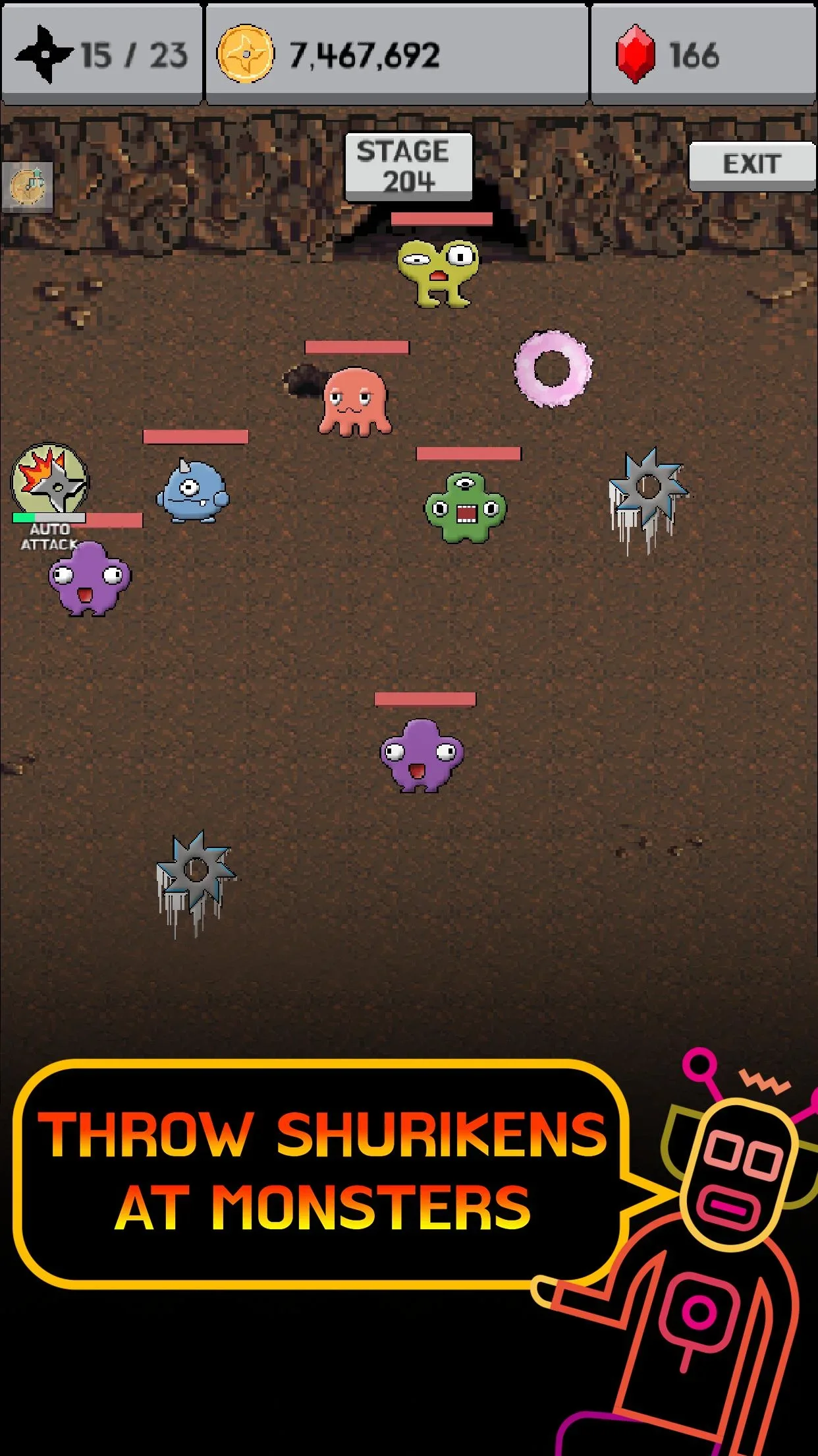 xxUP - пиксельный тайм-киллер, в котором игрок будет иметь дело с сюрикенами. С помощью этого метательного оружия из Японии пользователь станет бороться с различными монстрами и боссами. Для устранения противников на локации достаточно точно метнуть несколько сюрикенов в цель и наблюдать, как враги аннигилируются. Помимо участия в боев здесь также необходимо постоянно улучшать свое оружие путем совмещения одинаковых ножей и придания им магических характеристик, которые дадут значительное преимущество.