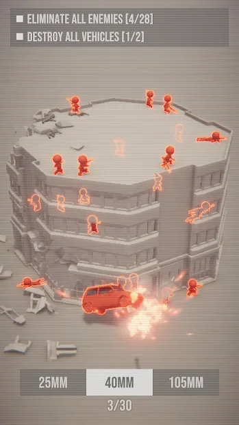 Base Attack - экшн с минималистичным визуалом и отличной физикой разрушения объектов. Здесь игрок станет уничтожать противников и транспорт с вертолета или дрона точными выстрелами из различного оружия. Для прохождения каждого уровня пользователю нужно в кратчайшее время поразить цель, при этом нельзя допускать ответного огня. По мере прохождения геймеру станут открываться новые виды пушек, начиная от пулеметов и заканчивая лазерами. Все это вооружение позволит сравнивать с землей целые здания и наблюдать за тем, как они разрушаются.