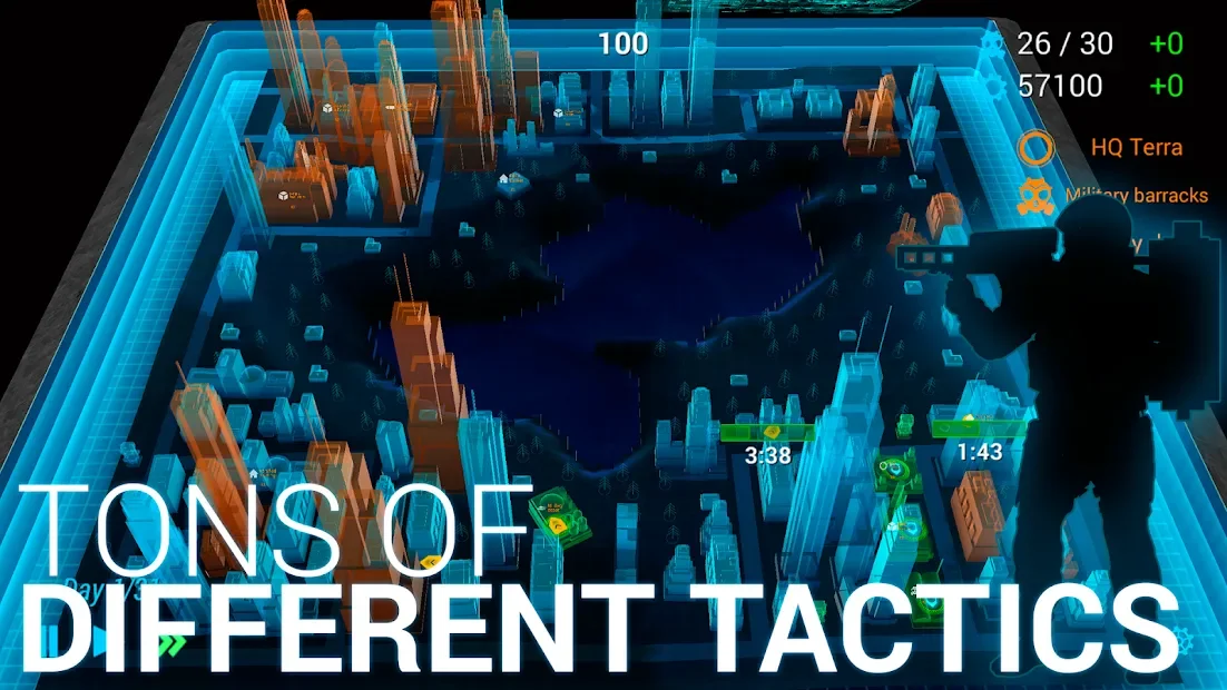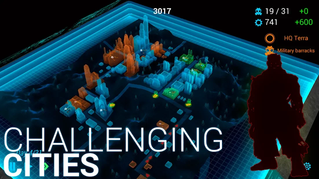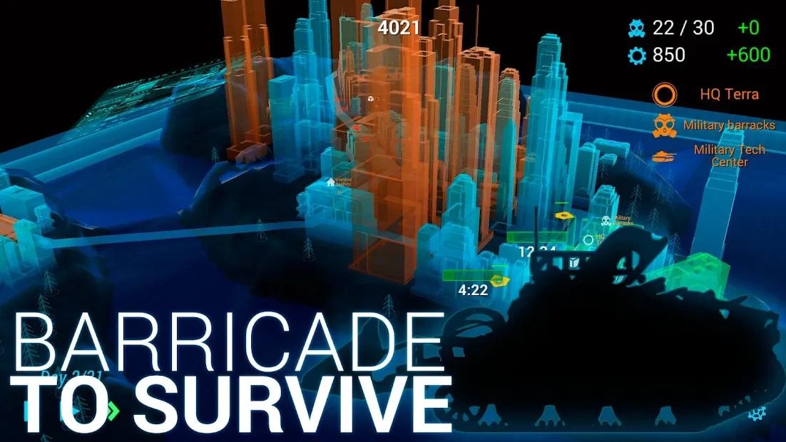 Зомби: Защита города - сочетание стратегии в реальном времени и игр жанра TD. Игрок окажется в городе будущего, где в роли командующего армии даст отпор наступающим ходячим мертвецам. Для спасения мирных жителей мегаполиса пользователь сможет применять и постепенно улучшать различные виды оружия, разнообразные боевые юниты и военную технику. Помимо горожан ему также придется охранять важные объекты инфраструктуры. Графический стиль проекта, а именно оформление карт в виде голограмм, выделяется среди других представителей жанра, поэтому сделает прохождение еще более увлекательным.