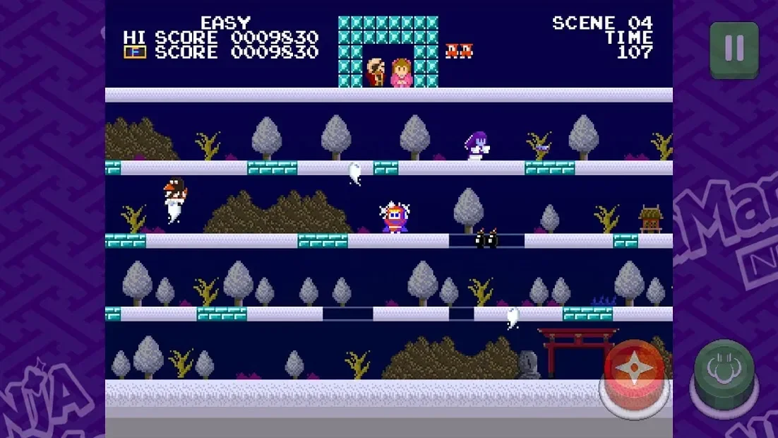 Ninja JaJaMaru neo classic - качественный платформер, который можно назвать классикой жанра. Впервые он увидел свет аж в 1985 году, и теперь каждый игрок сможет насладиться им на своих мобильных устройствах. Повествование здесь разворачивается вокруг смелого воина ниндзя Джаджмару, которому предстоит вызволить из плена принцессу Сакуру. На пути к ее освобождению герой должен будет преодоление сопротивление множества монстров, а также пройти через немалое количество опасных локаций. Справляться с трудностями ему помогут уникальные боевые способности и возможность метания сюрикенов.