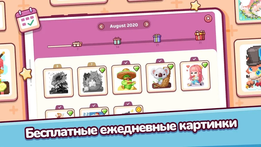 Pixel.Fun2 - раскраска с пиксельными изображениями, которая подарит пользователям море положительных эмоций. Игрок отправится на уникальный остров, где все пейзажи и объекты состоят из пикселей. Главной проблемой этого места является то, что все предметы здесь серые, поэтому геймеру необходимо окрасить их в яркие тона. На каждой локации ему предстоит правильно подбирать цвета и наполнять ими окружение. Удобство выбора обеспечит классическая система, благодаря которой к каждому оттенку привязано определенное число, на которое и станет ориентироваться игрок.