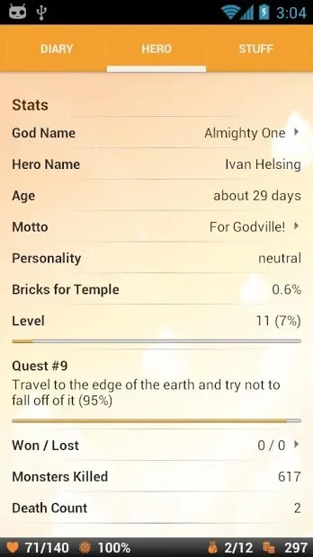 Godville - любопытная RPG, которая сделает каждого игрока почитаемым божеством. Данное интерактивное развлечение позволит пользователям стать богом и направлять своего почитателя. Герой не будет находиться под полным управлением геймера, однако последний может всячески подбадривать персонажа разнообразными способами, включая удары молний. Главная особенность проекта - искрометный черный юмор, которым пропитаны все реплики и текстовые описания, создающие непередаваемую атмосферу веселья.