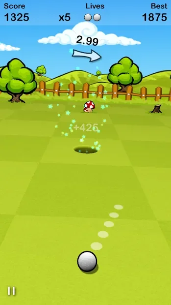 Putt Golf - аркадный спортивный симулятор, в котором игрок попробует свои силы в отправке мяча в лунку. Пользователь окажется на поле для гольфа, где ему предстоит попадать в цель точными ударами. В зависимости от выбранного режима геймеру предстоит выполнять определенные действия: в первом ему надо попасть максимальное количество раз при трех жизнях, во втором - положить как можно больше мячей подряд без промахов, а в третьем у гольфиста будет десять попыток удара. После отправки снаряда игрок получит шанс с помощью наклонов устройства изменять направление движения шарика, что позволит повысить шансы на успех.