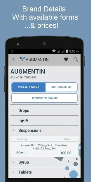Pharmapedia Pakistan - программа, которая даёт свободный доступ к информации о незапатентованных лекарственных средствах, включая данные о дозировке, доступных формах и ценах. Встроенный интеллектуальный поиск поможет быстро найти нужный препарат и узнать о нем все: дозы, противопоказания, группы риска и многое другое. Также здесь можно узнать о взаимодействии лекарств и найти альтернативное средство. Есть здесь и функция закладок, которая будет полезна для сохранения данных о нужном медикаменте.