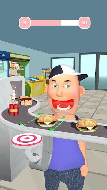 аркада, название которой говорит само за себя. Здесь игрок должен будет накормить героя различной едой, подаваемой с помощью конвейера. Чтобы все прошло удачно, нужно своевременно нажимать на механизм, который станет отправлять пищу прямо персонажу в рот. При этом стоит быть осторожным, поскольку не все предметы тут являются съедобными. Например, герою станет плохо от съеденного мыла или динамичной шашки, что приведет к необходимости прохождения уровня заново. В случае же успеха пользователь пройдет дальше и сможет покормить персонажа новыми вкусностями.