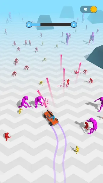Zombie Blast - динамичный экшн с простой трехмерной графикой, в котором игрок станет воевать против зомбированных человечков. Взяв под управление машину с бластерной пушкой, пользователь должен будет уничтожить определенное количество противников для перехода на следующий уровень. Среди врагов можно выделить как обычных зомби, так и увеличенных в размерах, в которых придется стрелять несколько раз. С другой стороны, на наступающих усиленных неприятелей у геймера всегда найдется аргумент в виде улучшений скорости полета и мощи снарядов.