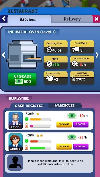 Pizza Empire Tycoon - аркадный симулятор, предлагающий игроку стать владельцем пиццерии. Вначале пользователь получит в управление небольшое заведение со скромным сервисом по приготовлению и продаже пиццы. Постепенно пиццерия станет приносить доход, что позволит получить доступ к новым возможностям. Так, реинвестирование полученных средств поможет расширить территорию, обновить оборудование и другие предметы на кухне и в зале, обзавестись доставкой и квалифицированным персоналом на каждой позиции.