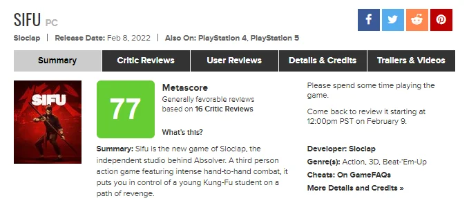 Новый приключенческий экшен про боевые искусства Sifu уже доступен. Игра также получила оценки от профессиональных критиков.