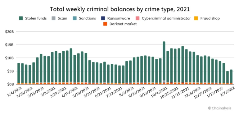 Предыдущий отчет аналитиков Chainalysis показал, что в 2020 году с нелегальными действиями были связаны переводу на сумму приблизительно $10 млрд.