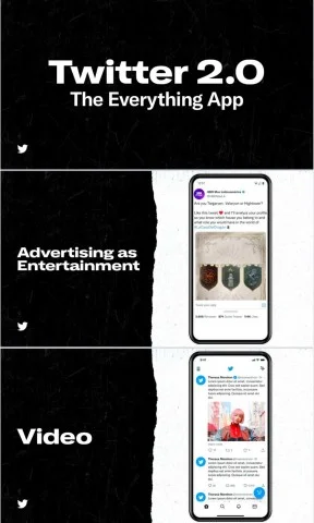 Во втором сегменте презентации показаны функции и цели, который Маск хочет реализовать в Twitter 2.0. В перечень нововведений входят поддержка сквозного шифрования личных сообщений, написание более длинных твитов, совершение платежей, верификация учетной записи, рекламные вставки в развлекательных целях. Помимо этого, после повальных увольнений Twitter нуждается в новом персонале, так как после прихода Маска штат работников резко сократился с 7000 до 2500 человек.