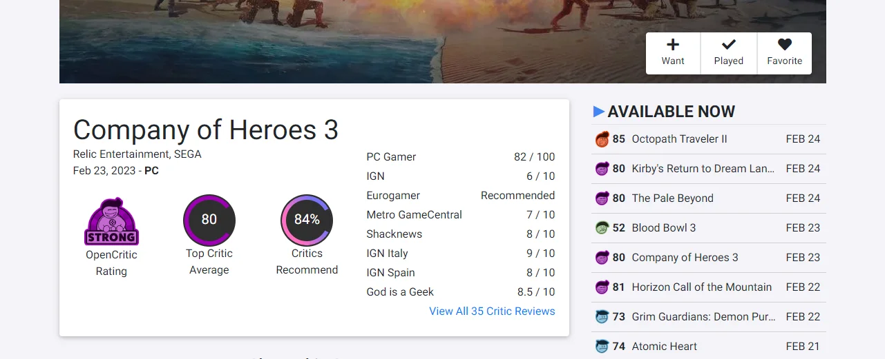 Мнения профессиональных критиков и игроков насчет Company of Heroes 3 разделились