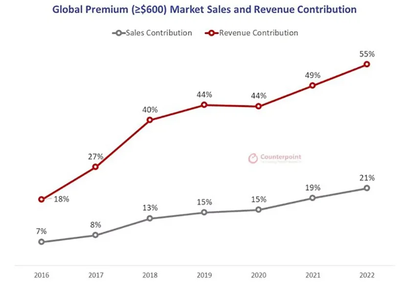 Стали известны ведущие игроки рынка премиальных смартфонов в 2022 году
