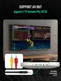 Корпус устройства имеет габариты 166×69×32 мм. На нем имеются классические клавиши X, Y, A, B, Start, Select. Помимо этого, здесь есть аналоговый стик, триггеры и клавиша D-Pad. Из прочих особенностей стоит отметить наличие стерео, возможность использования карточек формата microSD. Зарядка аккумулятора консоли объемом 1500 мАч происходит через порт USB Type-C, автономность позволит поиграть без перерывов до 6 часов подряд. Для вывода картинки на телевизор имеется порт AV.