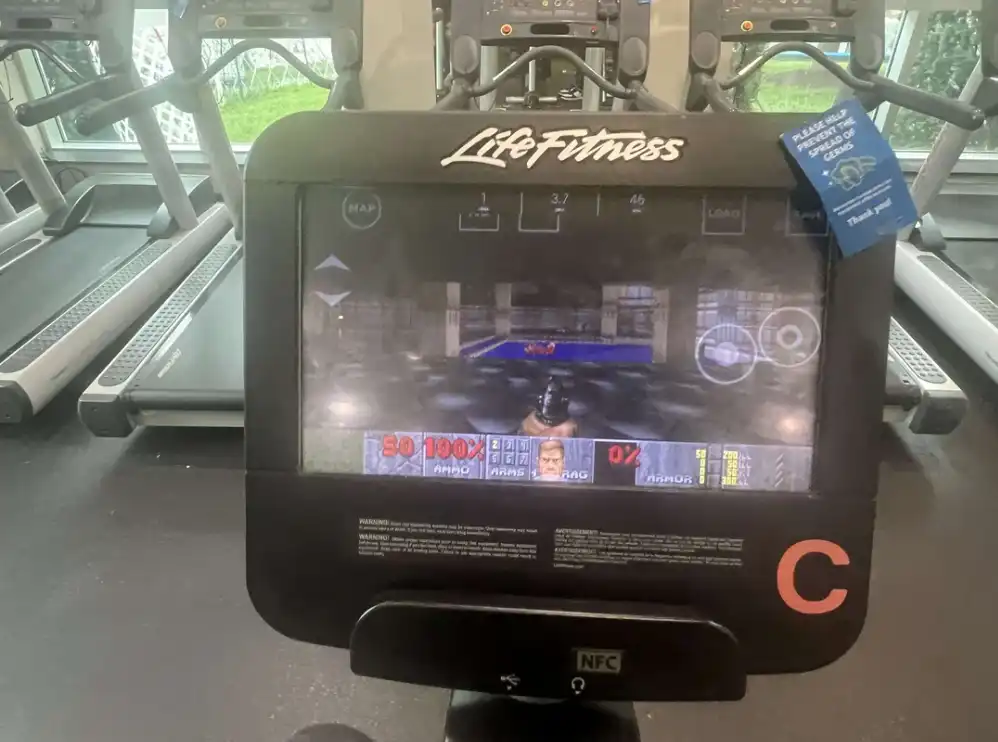 Оригинальная DOOM вновь удивила поклонников своим появлением на неожиданной платформе — на этот раз игра была запущена на эллиптическом тренажёре Life Fitness SE3. Энтузиаст под ником grubbyplaya на Reddit поделился необычным экспериментом, в ходе которого ему удалось установить культовый шутер на тренажёр с сенсорным экраном, работающий под управлением Android 5.
