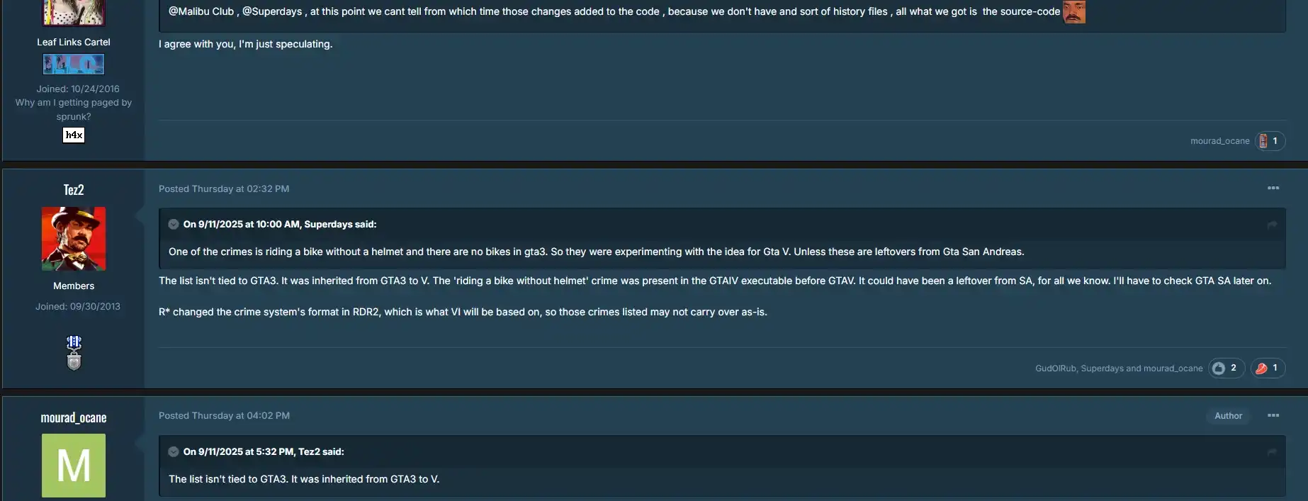 Заявление прозвучало во время обсуждения исходного кода Rage Engine за 2022 год на одном из фанатских форумов. Пользователи обратили внимание на неактивные функции в файлах GTA 5, включая штрафы за превышение скорости, и предположили, что они перейдут в новую часть серии. Однако инсайдер пояснил, что Rockstar изменила формат механики правонарушений в Red Dead Redemption 2, и именно эта модель лёгла в основу будущей системы, поэтому функции из GTA 5 могут быть неактуальны.
