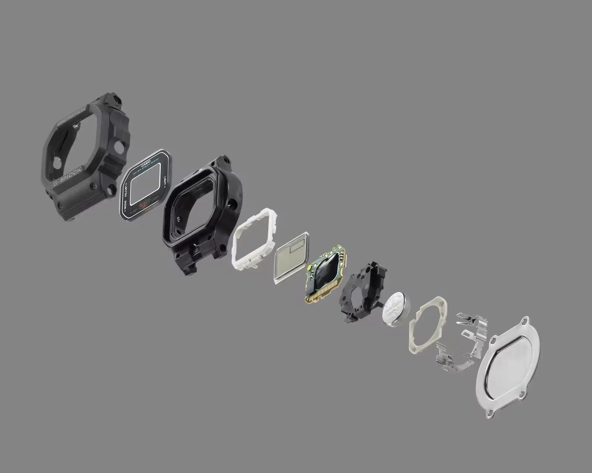 Вопреки крошечным габаритам, Nano DWN-5600 обладают непроницаемостью от воды на глубине погружения до 200 м и защищены от ударов. В корпусе установлена высокоплотная электронная начинка и маленький АКБ, рассчитанный на два года работы. Корпус и ремешок произведены из переработанной смолы, а последний регулируется под размер пальца с окружностью от 48 до 82 миллиметров. В комплектацию также входит коллекционная подставка из силикона.