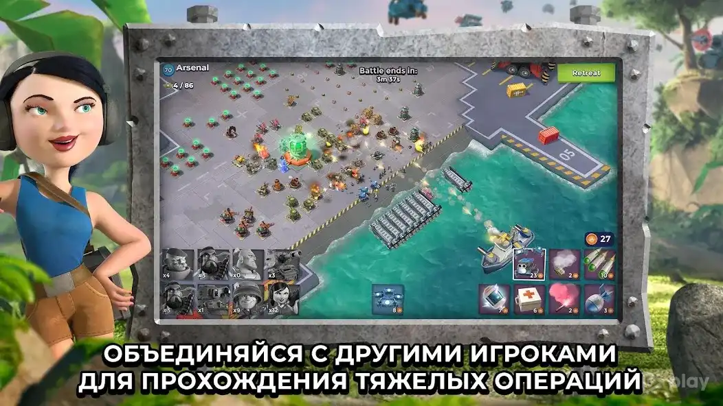 Boom Beach – это непрекращающиеся онлайн-стратегия, в которой принимают участие знаменитые кланы прямо как в Clash of Clans. В начале партии дают небольшой островок, на котором предстоит развивать свои владения. Как только прокачка закончится, можно смело атаковать ближайшие острова.