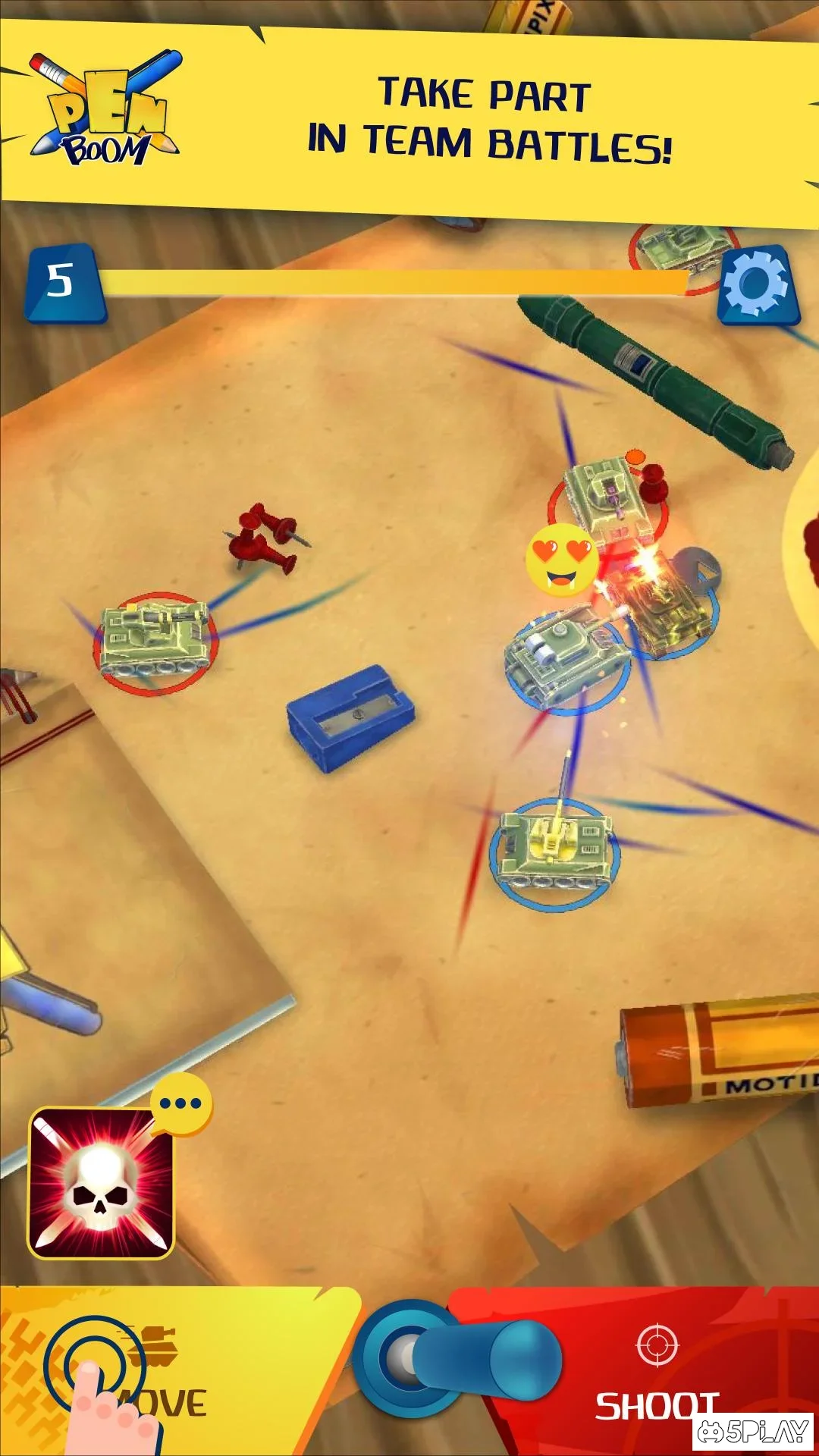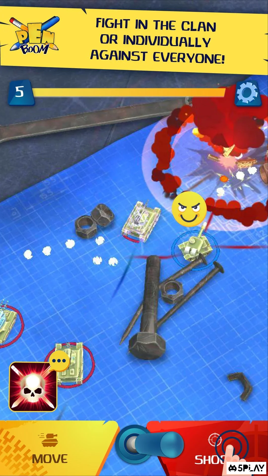 Pen Boom - игра, способная вызвать ностальгию по детству, ведь в ней пользователь будет играть в танчики на бумаге. Игрок сможет бросить вызов другим таким же танкистам и сразиться с ними на импровизированной арене. Чтобы победить, нужно метко стрелять и стараться не попадать на линию огня противника. В перерывах между сражениями можно модернизировать танк, улучшая его броню и вооружая новыми пушками. Проект имеет приятную и необычную графику, увлекательный геймплей и динамичные бои в режиме мультиплеера.