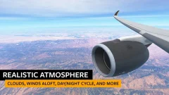 Имеются режимы как для опытных игроков, так и новичков. На выбор представлено 27 уникальных самолетов, 8 локаций, в которых можно осуществлять полёты, а также точные копии самых больших аэропортов на планете. Среди характеристик полёта имеются: время перелета и погодные условия, балансировка и масса, инструментальная посадочная система, система автоматического пилотирования и планирования полётов.