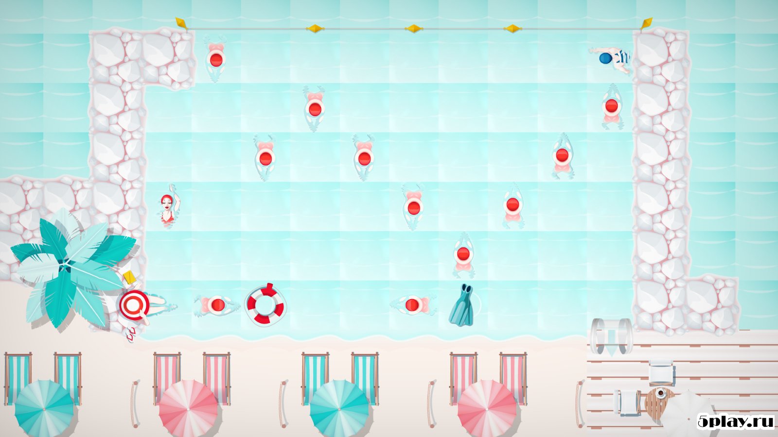 головоломка с расслабляющей атмосферой отдыха и лета. Здесь пользователь сможет поплавать в различных водоемах, начиная от бассейнов и заканчивая реками и озёрами. Главной цель игры - не столкнуться с другими пловцами и предметами, плавающими поблизости. Для этого необходимо продумывать каждый свой шаг и мгновенно оценивать ситуацию, ведь каждый находящийся в воде пловец имеет собственный способ передвижения. Всего тут имеется более сотни увлекательных уровней, несколько типов пловцов и объектов, на которых можно передвигаться.