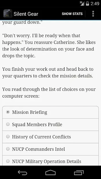Silent Gear - интерактивный игровой проект, переносящий пользователя в 2032 год. После экономического кризиса Соединенные Штаты перестали быть ведущим мировым государством. Воспользовавшись ситуацией, Россия и Китай объединились в коммунистическую коалицию и захватили большую часть Евразии. В это же время Ближний Восток оказался под управлением террористов. Видя наступающую угрозу, силы НАТО создали разведовательный спецотряд, которым и будет управлять игрок. Судьба команды полностью ляжет на командира, действия которого выльются в один из вариантов концовок.