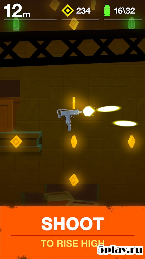 аркада со множеством пушек. В ней игроку требуется продвигаться вверх по уровню, а управлять он будет различным огнестрельным оружием. Совершая выстрелы, пользователь будет вести автоматы и пистолеты с помощью отдачи. Вместе с тем тут необходимо собирать разбросанные бонусы. Делать это можно как посредством точных попаданий, так и просто задевая заветные монетки и кристаллы. Оригинальная идея, простой геймплей и множество пушек, включая автомат Калашникова и УЗИ - все это обязательно придётся по вкусу геймерам.