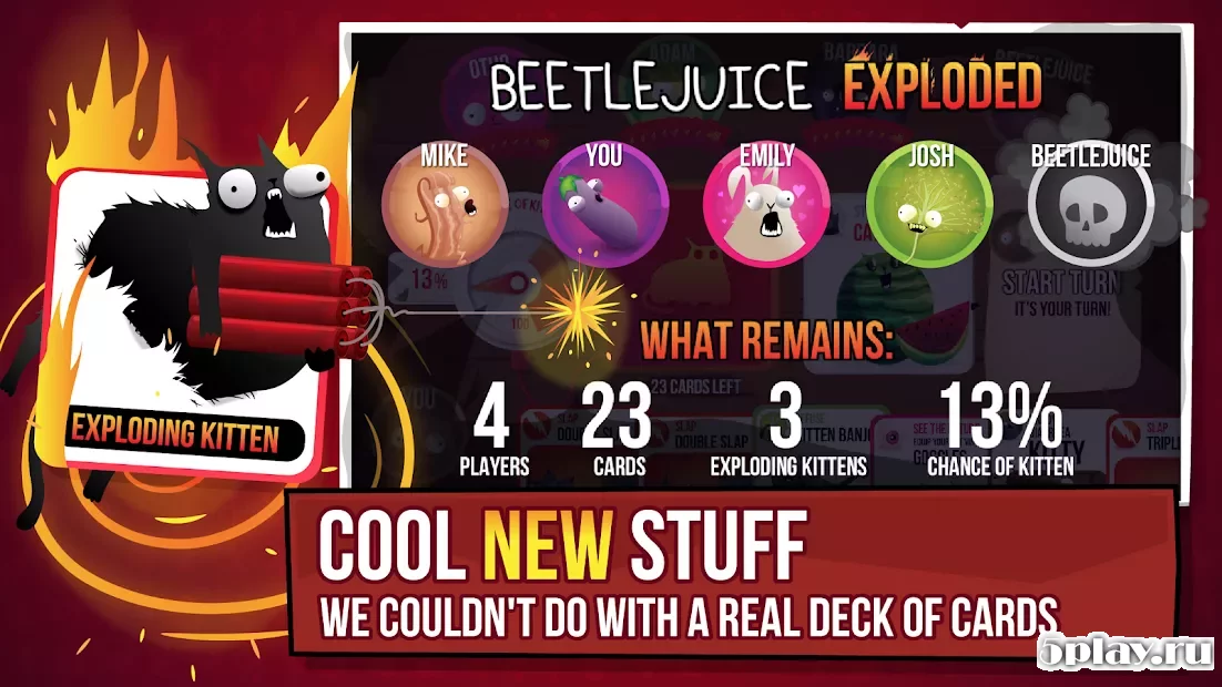 На нашем сайте можно скачать последнюю версию Exploding Kittens - Official в формате APK — быстро и бесплатно! Без регистрации и СМС: прямая ссылка и проверенные файлы!