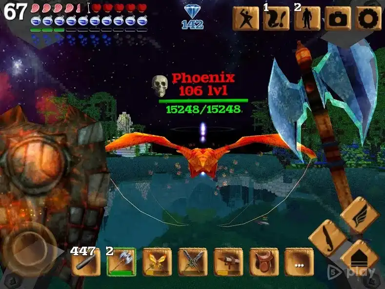 Новичков порадует подробный пошаговый инструктаж, пройдя который дальнейшее прохождение не будет затруднительным. Управление по большому счету не отличается от того же майнкрафт или Survivalcraft. В левой части экрана находится виртуальный джойстик, с помощью которого игрок передвигается по сторонам, а в правой - клавиши для прыжков и полетов. Главный герой ничем не ограничен, все предметы и другие ценности можно добывать игровым путем.