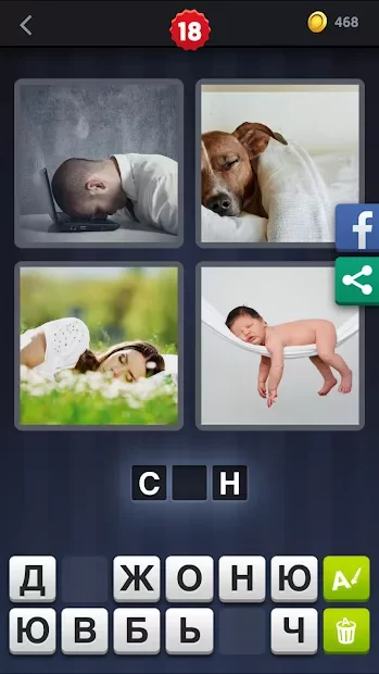 4 фотки 1 слово постоянно обновляется. А это значит, что веселье не закончится никогда. Играйте и получайте удовольствие от процесса.