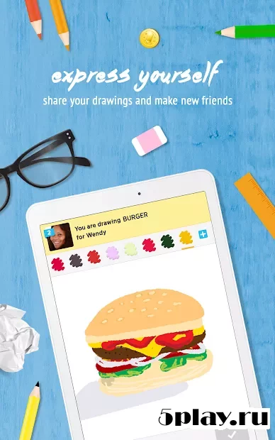 Приложение затягивает, увлекает и заставляет забыть о времени. Более 5 000 слов, предложенных для игры – это не шутки. Здесь есть над чем потрудиться. Яркие цвета, множество инструментов для рисования, возможность сразиться с друзьями в социальных сетях, и все это доступно в любой момент.
