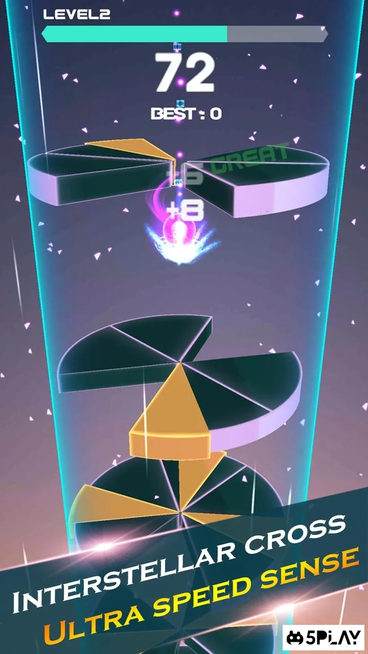 аркада с бесконечным геймплеем для Андроид, в которой необходимо управлять летящим вниз мячиком. Для этого игроку нужно поворачивать направление его движения вправо или влево, минуя цветные блоки и проходя через отверстия. На первый взгляд игровой процесс кажется чересчур простым, но со временем продвигаться дальше будет все сложнее, ведь шарик то и дело норовит упасть с края. Проект обладает яркой неоновой графикой, простейшим управлением и множеством уровней, разделенных по главам.