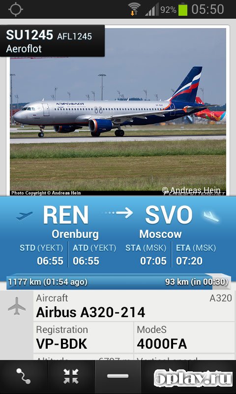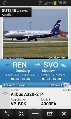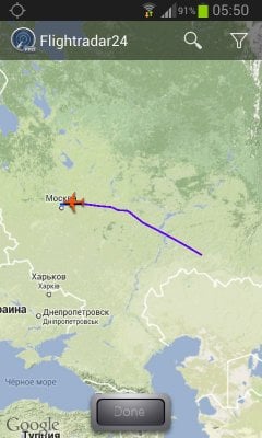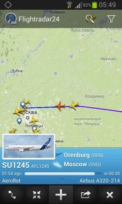 Приложение Flightradar24 на андроид позволяет наблюдать за движением самолетов в режиме реального времени. Вне зависимости от того, где вы находитесь – просто запустите программу и изучайте карту полетов. Все иконки самолетов максимально реалистичны. И если нажать на одну из них, то появятся полные данные о рейсе (маршрут, время вылета и прибытия), а также тип самолета, его скорость и высота.