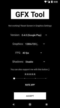 Graphics Tool for PUBG - полезный инструмент для любителей знаменитой мобильной игры в жанре королевской битвы. С помощью данного приложения каждый игрок сможет настроить графику в PlayerUnknown's Battlegrounds в соответствии со своими предпочтениями и мощностью гаджета. Для этого разработчики сделали множество настроек, изменив которые пользователь получит желаемую конфигурацию графики. Простой интерфейс и многочисленные разделы позволят любому геймеру настроить игрушку так, чтобы за ней можно было комфортно проводить время.