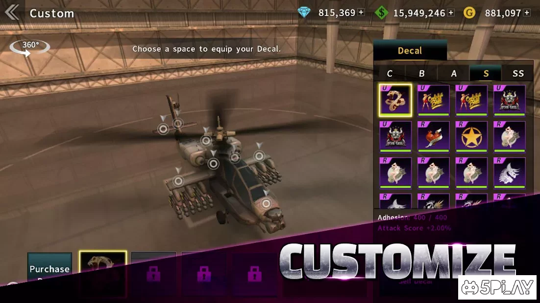 Прокачивайте свой вертолет, меняйте его окрас и оружие, дополняя его новыми фишками. Чем выше уровень, тем сложнее, но в то же время, интереснее поставленные перед пользователями задачи. В Вертолет Битва: 3D полет присутствует три военных компании, в которых каждый сможет принять участие. Зарабатывайте доллары и золото, которые помогут вам победить врагов вашей страны.