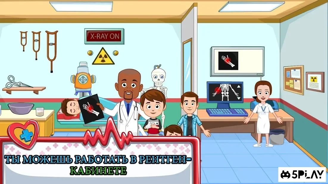 My Town: Hospital - ещё один проект из знаменитой линейки развивающих игр для Андроид. На сей раз пользователи отправятся в самую настоящую больницу, где смогут узнать много нового и интересного. Например, игроки получат возможность посетить рентген кабинет, а также процедуры УЗИ и другие комнаты. Как и во всех представителях серии здесь имеется несколько зон, где можно взаимодействовать с различными предметами и медицинскими аппаратами, а также проявлять максимум фантазии и смекалки.
